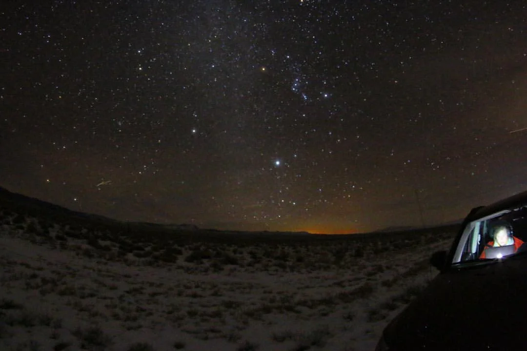 * Here's a photo of me editing the show last night while Martin took pictures of stars: