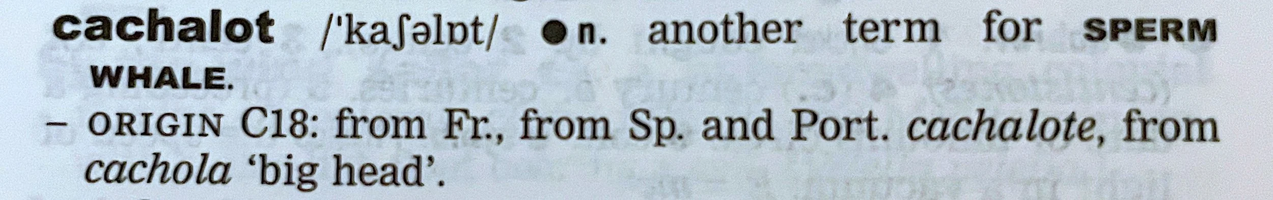 Origin 18th century: from French, from Spanish and Portuguese cachalote,