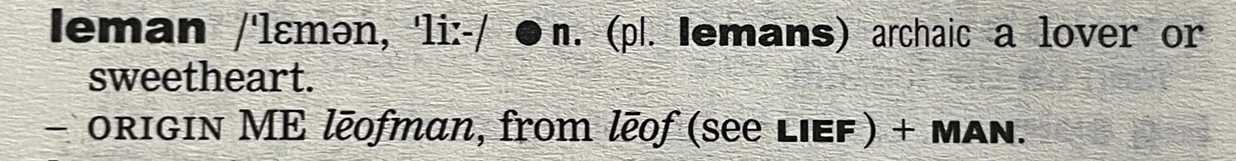 leman, noun (plural lemans) archaic: a lover or sweetheart.